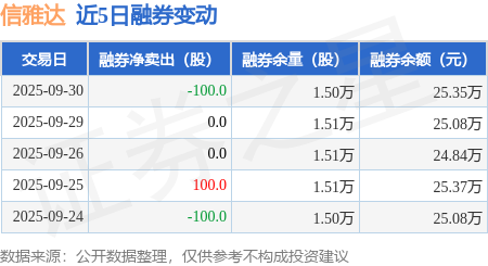 证券之星消息,9月30日,信雅达(600571)融资买入2336.44万元,融资偿还2837.32万元,融资净卖出500.87万元,融资余额5.81亿元。