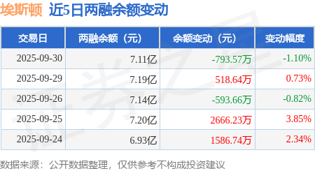 证券之星消息,9月30日,埃斯顿(002747)融资买入5724.63万元,融资偿还6560.57万元,融资净卖出835.95万元,融资余额7.08亿元。