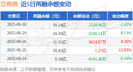 证券之星消息,9月30日,立昂微(605358)融资买入1.8亿元,融资偿还2.05亿元,融资净卖出2432.75万元,融资余额10.04亿元。