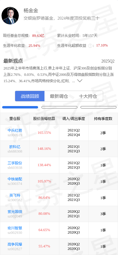 在最新基金报告期内,杨金金有以下调仓(附大佬持仓 - 最新调仓截图):