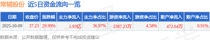 10月9日的资金流向数据方面,主力资金净流入1.93亿元,占总成交额36.97%,游资资金净流入2387.23万元,占总成交额4.58%,散户资金净流入472.64万元,占总成交额0.91%。
