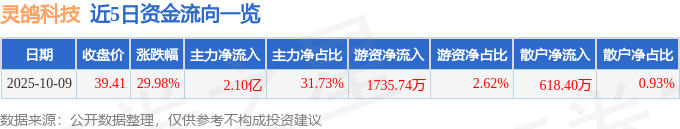 10月9日的资金流向数据方面,主力资金净流入2.1亿元,占总成交额31.73%,游资资金净流入1735.74万元,占总成交额2.62%,散户资金净流入618.4万元,占总成交额0.93%。