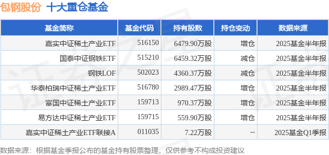 根据2025基金半年报公募基金重仓股数据,重仓该股的公募基金共6家,其中持有数量最多的公募基金为嘉实基金的嘉实中证稀土产业ETF。嘉实中证稀土产业ETF目前规模为24.27亿元,最新净值1.757(9月30日),较上一交易日上涨2.18%,近一年上涨76.96%。该公募基金现任基金经理为田光远。田光远在任的基金产品包括:嘉实中证软件服务ETF,管理时间为2021年6月4日至今,期间收益率为-8.41%;嘉实中证电池主题ETF,管理时间为2021年7月13日至今,期间收益率为-11.9%;嘉实中证稀土产业ETF联接A,管理时间为2021年8月3日至今,期间收益率为21.5%。