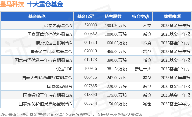 根据2025基金半年报公募基金重仓股数据,重仓该股的公募基金共15家,其中持有数量最多的公募基金为诺安基金的诺安先锋混合A。诺安先锋混合A目前规模为38.4亿元,最新净值3.4435(9月30日),较上一交易日上涨1.11%,近一年上涨43.95%。该公募基金现任基金经理为杨谷。杨谷在任的基金产品包括:诺安优选回报混合A,管理时间为2023年10月21日至今,期间收益率为46.69%;诺安精选回报混合,管理时间为2023年10月21日至今,期间收益率为53.83%;诺安进取回报混合,管理时间为2024年4月13日至今,期间收益率为64.96%。