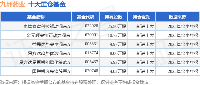 重仓九洲药业的公募基金请见下表: