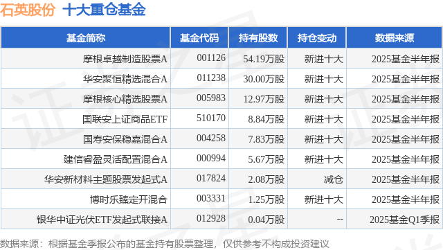根据2025基金半年报公募基金重仓股数据,重仓该股的公募基金共8家,其中持有数量最多的公募基金为摩根基金(中国)的摩根卓越制造股票A。摩根卓越制造股票A目前规模为7.52亿元,最新净值1.7919(9月30日),较上一交易日上涨0.73%,近一年上涨46.85%。该公募基金现任基金经理为赵隆隆。赵隆隆在任的基金产品包括:摩根核心精选股票A,管理时间为2021年4月23日至今,期间收益率为-27.82%;摩根香港精选港股通混合A,管理时间为2021年6月8日至今,期间收益率为-6.22%;摩根世代趋势混合发起式A,管理时间为2024年5月6日至今,期间收益率为39.49%;摩根中国生物医药混合(QDII)A,管理时间为2024年6月18日至今,期间收益率为56.74%。