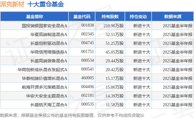 重仓派克新材的前十大公募基金请见下表: