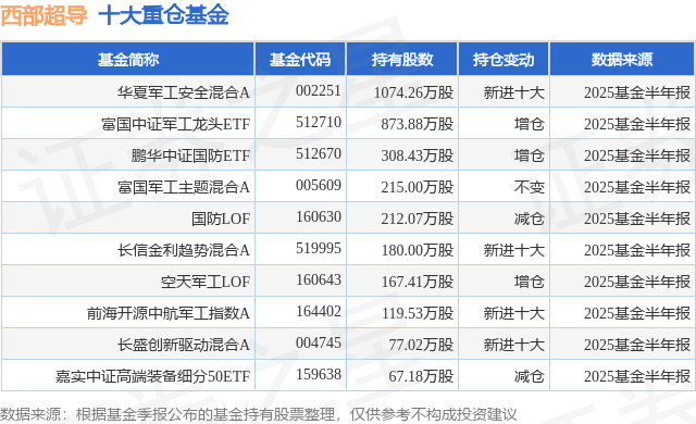 根据2025基金半年报公募基金重仓股数据,重仓该股的公募基金共61家,其中持有数量最多的公募基金为华夏基金的华夏军工安全混合A。华夏军工安全混合A目前规模为44.86亿元,最新净值1.892(9月30日),较上一交易日上涨5.58%,近一年上涨38.61%。该公募基金现任基金经理为万方方。