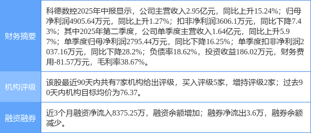 今日科德数控(688305)涨5.79%,收盘报69.48元。