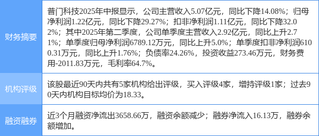 今日普门科技(688389)涨6.08%,收盘报14.66元。