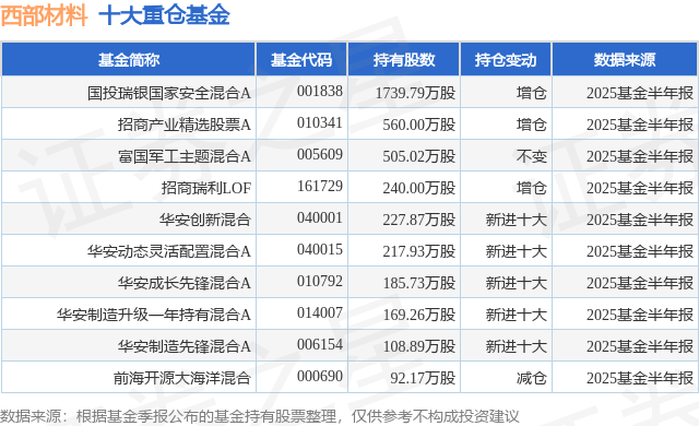 根据2025基金半年报公募基金重仓股数据,重仓该股的公募基金共28家,其中持有数量最多的公募基金为国投瑞银基金的国投瑞银国家安全混合A。国投瑞银国家安全混合A目前规模为25.25亿元,最新净值1.2474(9月30日),较上一交易日上涨4.01%,近一年上涨21.46%。该公募基金现任基金经理为李轩。