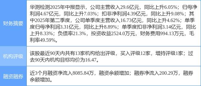 2025年9月3日,天风证券研究员朱晔,郭丽丽发布了对华测检测的研报《单季度盈利能力环比提升,收并购推进全球化扩张》,该研报对华测检测给出“买入”评级。证券之星数据中心根据近三年发布的研报数据计算,该研报作者对此股的盈利预测准确度为83.64%。