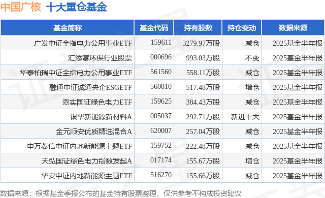 根据2025基金半年报公募基金重仓股数据,重仓该股的公募基金共31家,其中持有数量最多的公募基金为广发基金的广发中证全指电力公用事业ETF。广发中证全指电力公用事业ETF目前规模为33.14亿元,最新净值1.0077(9月30日),较上一交易日上涨0.01%,近一年下跌5.05%。该公募基金现任基金经理为陆志明。陆志明在任的基金产品包括:广发中证全指汽车指数A,管理时间为2021年6月17日至今,期间收益率为38.78%;广发中证全指建筑材料指数A,管理时间为2021年6月17日至今,期间收益率为-38.21%;广发中证全指家用电器ETF联接A,管理时间为2021年6月17日至今,期间收益率为11.76%;广发上证科创板50成份ETF,管理时间为2021年7月15日至今,期间收益率为-4.72%。