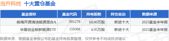 根据2025基金半年报公募基金重仓股数据,重仓该股的公募基金共2家,其中持有数量最多的公募基金为前海开源基金的前海开源清洁能源混合A。前海开源清洁能源混合A目前规模为4.44亿元,最新净值1.937(9月30日),较上一交易日上涨2.0%,近一年上涨41.39%。该公募基金现任基金经理为杨德龙。杨德龙在任的基金产品包括:前海开源深圳特区精选股票A,管理时间为2021年5月7日至今,期间收益率为19.51%;前海开源优质龙头6个月持有混合A,管理时间为2021年7月9日至今,期间收益率为-12.47%;前海开源沪港深龙头精选混合A,管理时间为2021年11月18日至今,期间收益率为-14.95%。