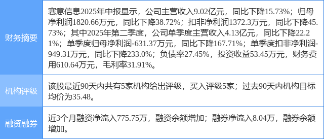 今日赛意信息(300687)涨5.35%,收盘报29.71元。