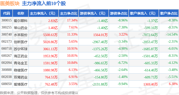 从资金流向上来看,当日医美板块主力资金净流入1.26亿元,游资资金净流出2.07亿元,散户资金净流入8050.52万元。医美板块个股资金流向见下表: