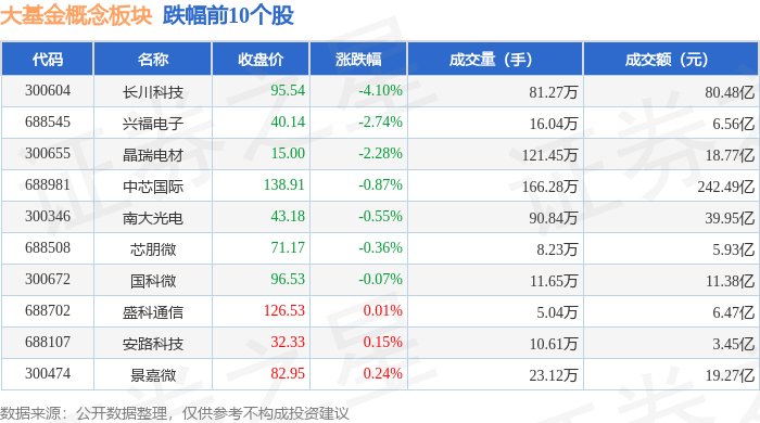 从资金流向上来看,当日大基金概念板块主力资金净流出17.16亿元,游资资金净流入10.33亿元,散户资金净流入6.83亿元。大基金概念板块个股资金流向见下表: