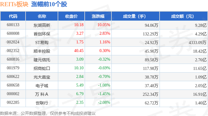 证券之星消息,10月9日REITs板块较上一交易日下跌1.61%,张江高科领跌。当日上证指数报收于3933.97,上涨1.32%。深证成指报收于13725.56,上涨1.47%。REITs板块个股涨跌见下表: