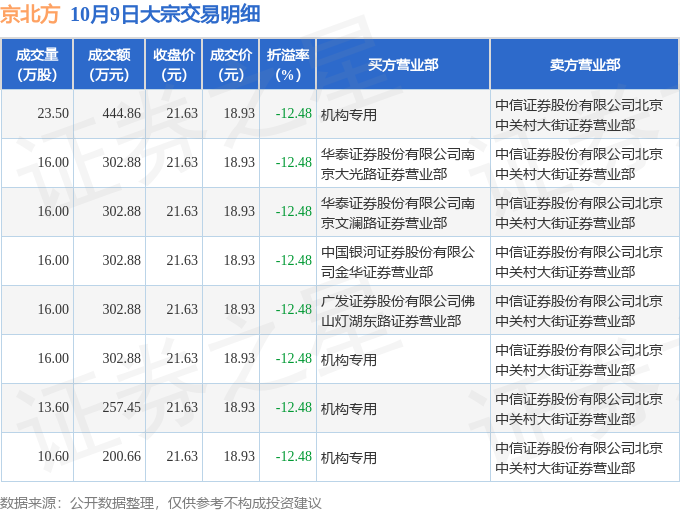 证券之星消息,10月9日京北方发生大宗交易,交易数据如下: