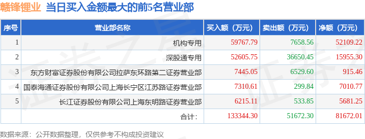 从龙虎榜公布的当日买卖数据来看,机构合计净买入5.21亿元,北向资金合计净买入1.6亿元。章盟主等知名游资榜上有名。(知名游资章盟主一般指国泰海通证券股份有限公司上海长宁区江苏路证券营业部席位,根据市场资料整理,仅供参考)