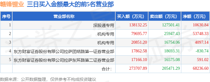 证券之星消息,沪深交易所2025年10月9日公布的交易公开信息显示,赣锋锂业(002460)因日涨幅偏离值达到7%的前5只证券,连续三个交易日内,涨幅偏离值累计达到20%的证券登上龙虎榜。此次是近5个交易日内第1次上榜。