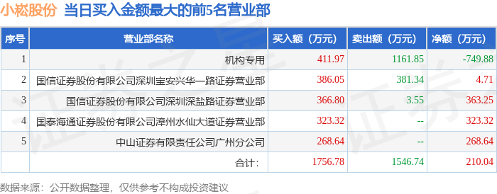 证券小知识:龙虎榜是交易所披露的竞价交易公开信息,现身龙虎榜的个股都是当日最为活跃的个股,是投资者日常重点关注的数据。交易所公布当日买入金额和卖出金额前五名的席位,其中一些席位代表特殊意义,如机构专用席位是指基金专用席位、券商自营专用席位、社保专用席位、券商理财专用席位、保险机构专用席位、保险机构租用席位、QFII专用席位等机构投资者买卖证券的专用通道和席位。深股通专用、沪股通专用为北向资金的交易席位。从龙虎榜数据可以发现和研究机构、游资和散户的资金动向。一些营业部席位经常上榜,市场知名度较高,投资者整理代表散户、游资、量化等不同资金的营业部席位。