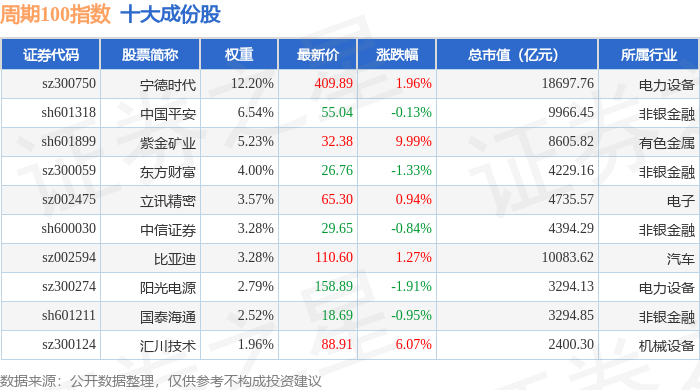 周期100(399402)指数十大成份股详情如下: