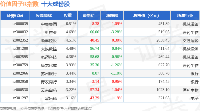 证券之星消息,10月9日,价值因子R(480056)指数报收于3122.29点,涨0.82%,成交576.35亿元,换手率1.55%。当日该指数成份股中,上涨的有32家,久立特材以8.04%的涨幅领涨,下跌的有18家,新产业以3.28%的跌幅领跌。
