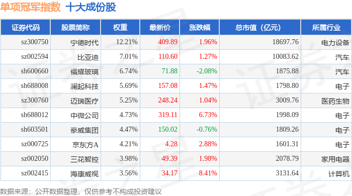 证券之星消息,10月9日,单项冠军(980150)指数报收于8935.06点,涨2.26%,成交2101.18亿元,换手率3.04%。当日该指数成份股中,上涨的有41家,迈为股份以17.75%的涨幅领涨,下跌的有8家,科沃斯以4.7%的跌幅领跌。
