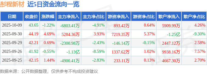 证券之星消息,截至2025年10月9日收盘,彤程新材(603650)报收于43.65元,下跌1.22%,换手率5.19%,成交量31.01万手,成交额13.87亿元。