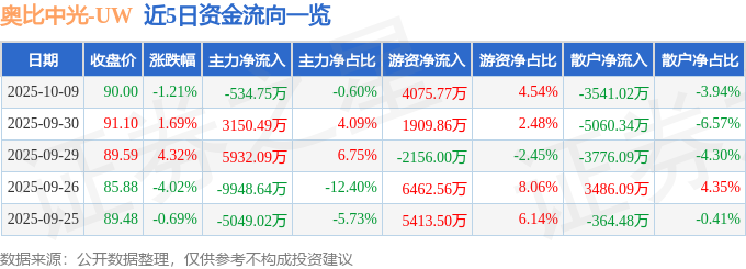 10月9日的资金流向数据方面,主力资金净流出534.75万元,占总成交额0.6%,游资资金净流入4075.77万元,占总成交额4.54%,散户资金净流出3541.02万元,占总成交额3.94%。