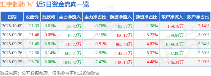 证券之星消息,截至2025年10月9日收盘,汇宇制药(688553)报收于21.33元,下跌0.61%,换手率1.02%,成交量3.49万手,成交额7455.44万元。