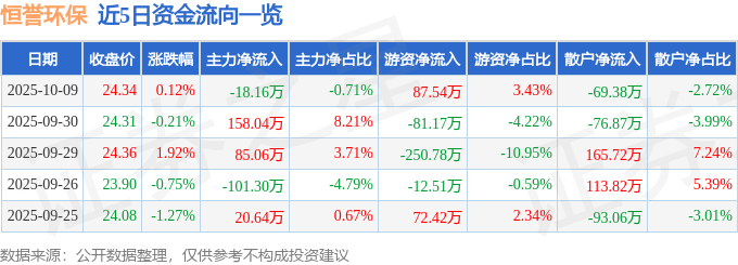 10月9日的资金流向数据方面,主力资金净流出18.16万元,占总成交额0.71%,游资资金净流入87.54万元,占总成交额3.43%,散户资金净流出69.38万元,占总成交额2.72%。