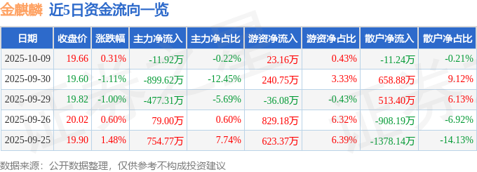 10月9日的资金流向数据方面,主力资金净流出11.92万元,占总成交额0.22%,游资资金净流入23.16万元,占总成交额0.43%,散户资金净流出11.24万元,占总成交额0.21%。