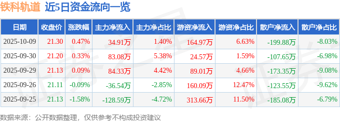 10月9日的资金流向数据方面,主力资金净流入34.91万元,占总成交额1.4%,游资资金净流入164.97万元,占总成交额6.63%,散户资金净流出199.88万元,占总成交额8.03%。