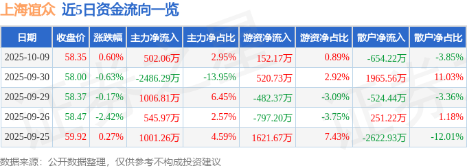 10月9日的资金流向数据方面,主力资金净流入502.06万元,占总成交额2.95%,游资资金净流入152.17万元,占总成交额0.89%,散户资金净流出654.22万元,占总成交额3.85%。