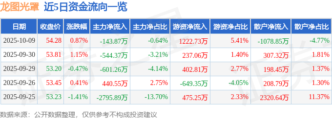 证券之星消息,截至2025年10月9日收盘,龙图光罩(688721)报收于54.28元,上涨0.87%,换手率11.93%,成交量4.18万手,成交额2.26亿元。