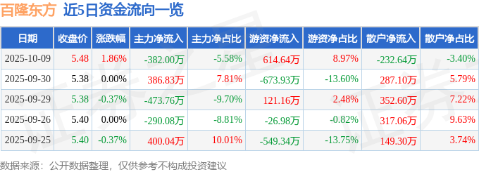 证券之星消息,截至2025年10月9日收盘,百隆东方(601339)报收于5.48元,上涨1.86%,换手率0.84%,成交量12.59万手,成交额6851.61万元。