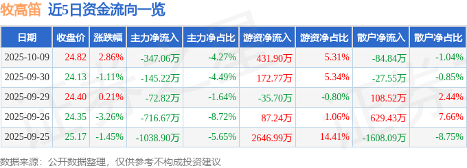 证券之星消息,截至2025年10月9日收盘,牧高笛(603908)报收于24.82元,上涨2.86%,换手率3.45%,成交量3.22万手,成交额8127.25万元。