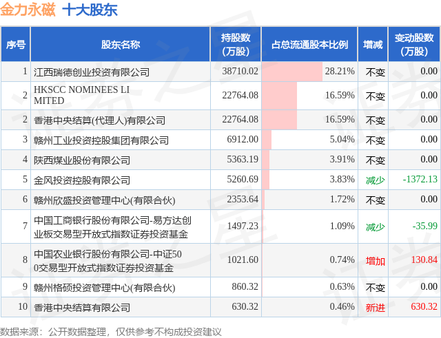 根据金力永磁2025年中报公布的十大股东详情如下: