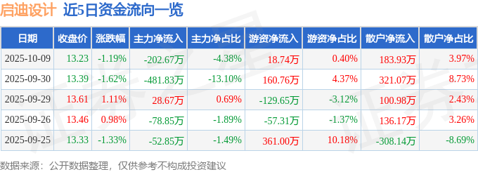 证券之星消息,截至2025年10月9日收盘,启迪设计(300500)报收于13.23元,下跌1.19%,换手率2.07%,成交量3.48万手,成交额4630.14万元。