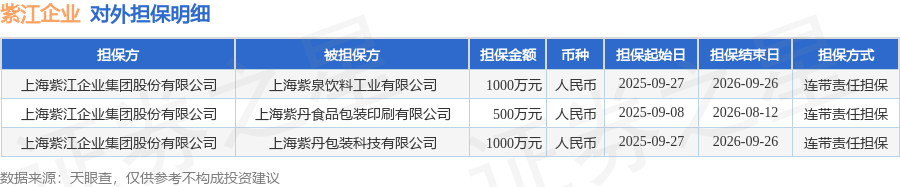 紫江企业9月30日披露3笔对外担保,被担保公司3家。对外担保明细如下表: