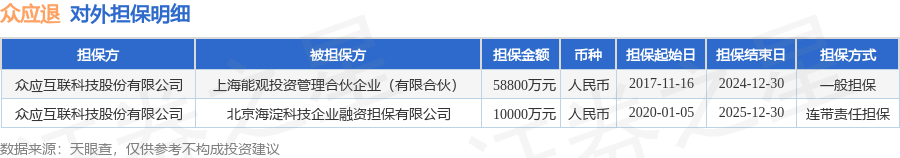 众应退9月29日披露2笔对外担保,被担保公司2家。对外担保明细如下表: