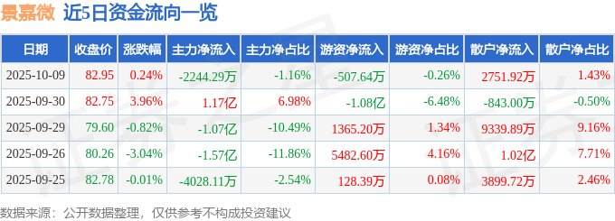 证券之星消息,截至2025年10月9日收盘,景嘉微(300474)报收于82.95元,上涨0.24%,换手率5.69%,成交量23.12万手,成交额19.27亿元。
