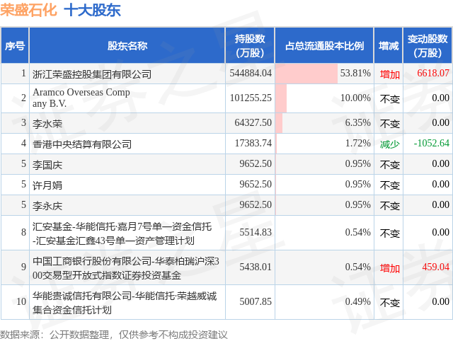 根据荣盛石化2025年中报公布的十大股东详情如下: