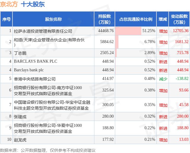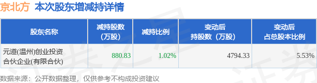 证券之星消息,10月9日京北方发布公告《京北方:关于控股股东、实际控制人及一致行动人权益变动触及1%整数倍的公告》,其股东元道(温州)创业投资合伙企业(有限合伙)于2025年9月8日至2025年10月9日间合计减持880.83万股,占公司目前总股本的1.0155%,变动期间该股股价下跌3.31%,截止10月9日收盘报21.63元。