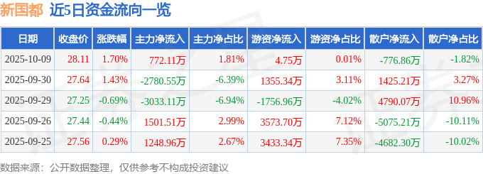 证券之星消息,截至2025年10月9日收盘,新国都(300130)报收于28.11元,上涨1.7%,换手率3.51%,成交量15.23万手,成交额4.27亿元。