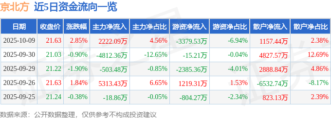 证券之星消息,截至2025年10月9日收盘,京北方(002987)报收于21.63元,上涨2.85%,换手率2.7%,成交量22.79万手,成交额4.87亿元。