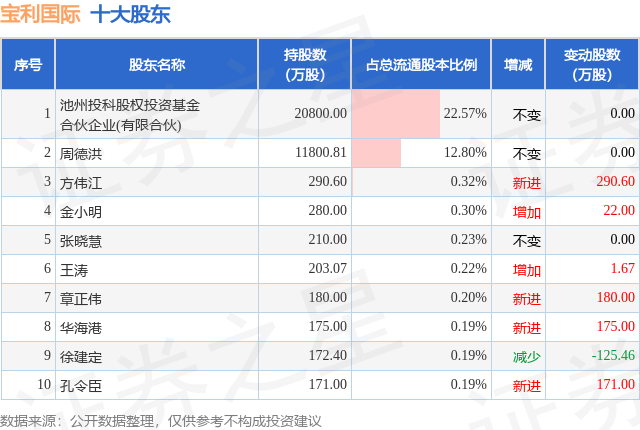 根据宝利国际2025年中报公布的十大股东详情如下: