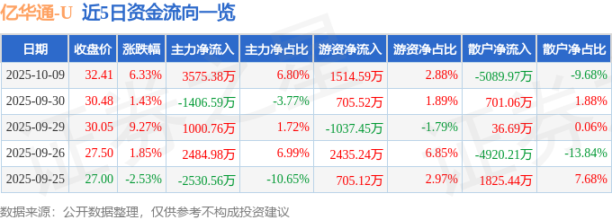 证券之星消息,截至2025年10月9日收盘,亿华通(688339)报收于32.41元,上涨6.33%,换手率8.55%,成交量16.75万手,成交额5.26亿元。
